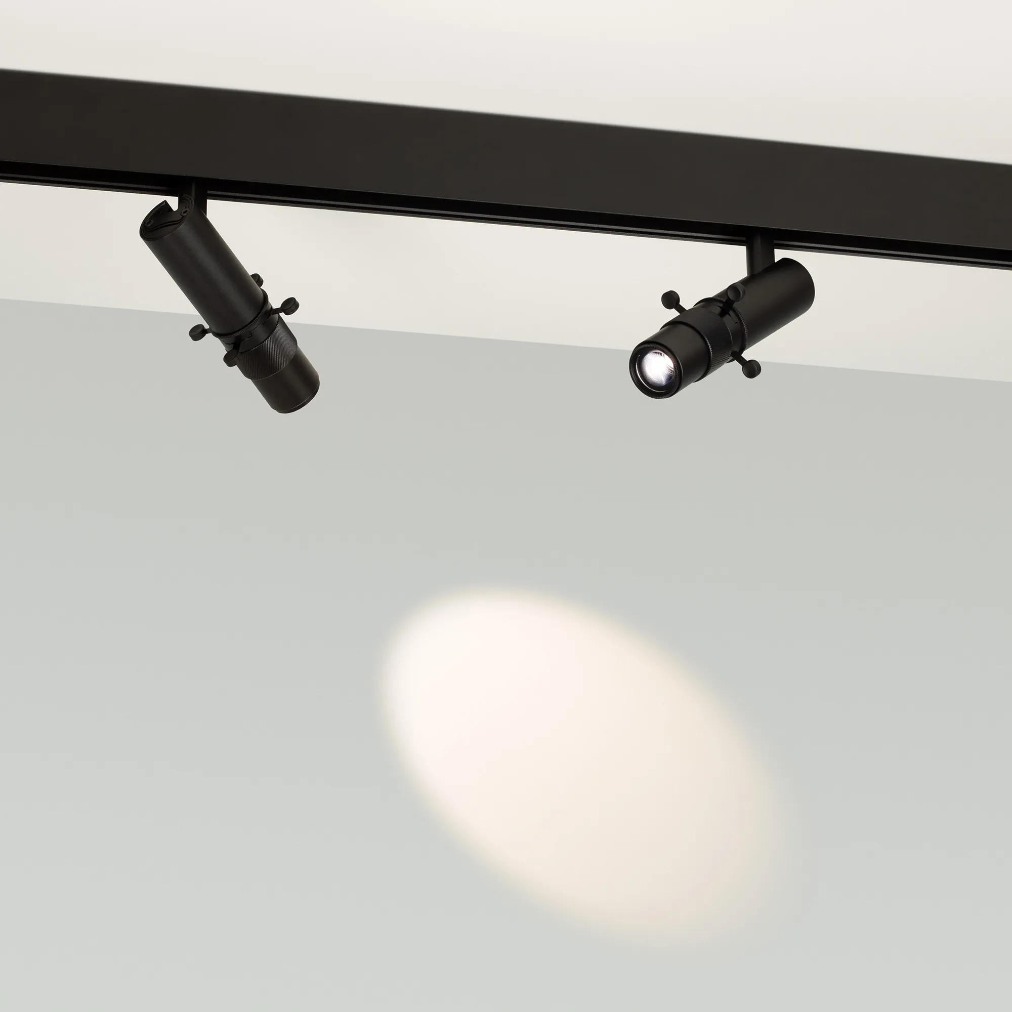 Светильник с кадрируемой оптикой и изменяемым углом для магнитных треков MAG-ORIENT шириной 26 мм. Мощность 6 Вт, св. поток 60-100 лм, 17 лм/Вт, теплый 3000 K, CRI>98, угол 19-29°, напряжение питания 48 В. Черный фигурный корпус из металла, степень защиты IP20. Размеры LxWxH 126x35x195 мм. Длина светоизлучающего модуля 140мм. Монтаж на трек MAG-ORIENT. Пульсация <1%.