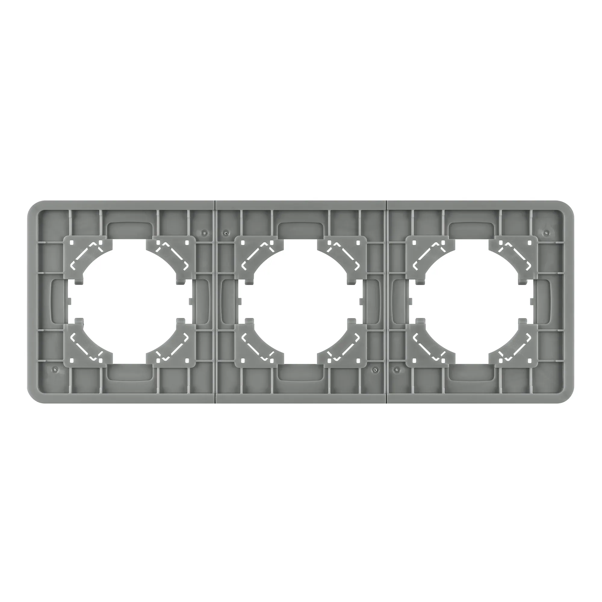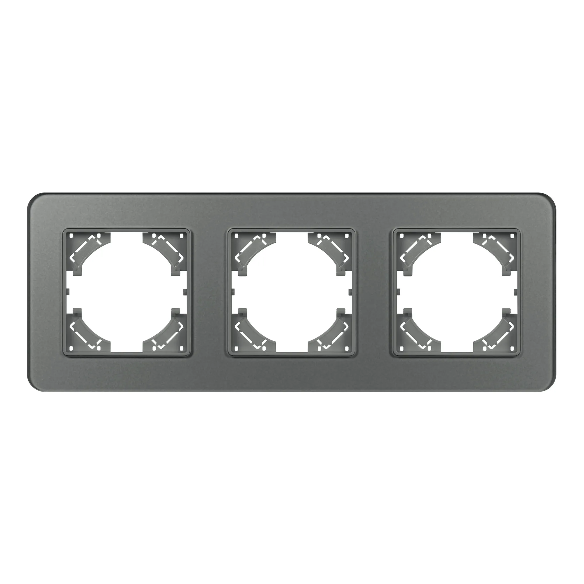 Рамка стеклянная на 3 поста, под встраиваемый механизм. Цвет - серый с Soft-Touch покрытием. Уровень герметичности IP20. Ориентация монтажа - горизонтальная (основным ориентиром служат посадочные выступы для накладки механизма).