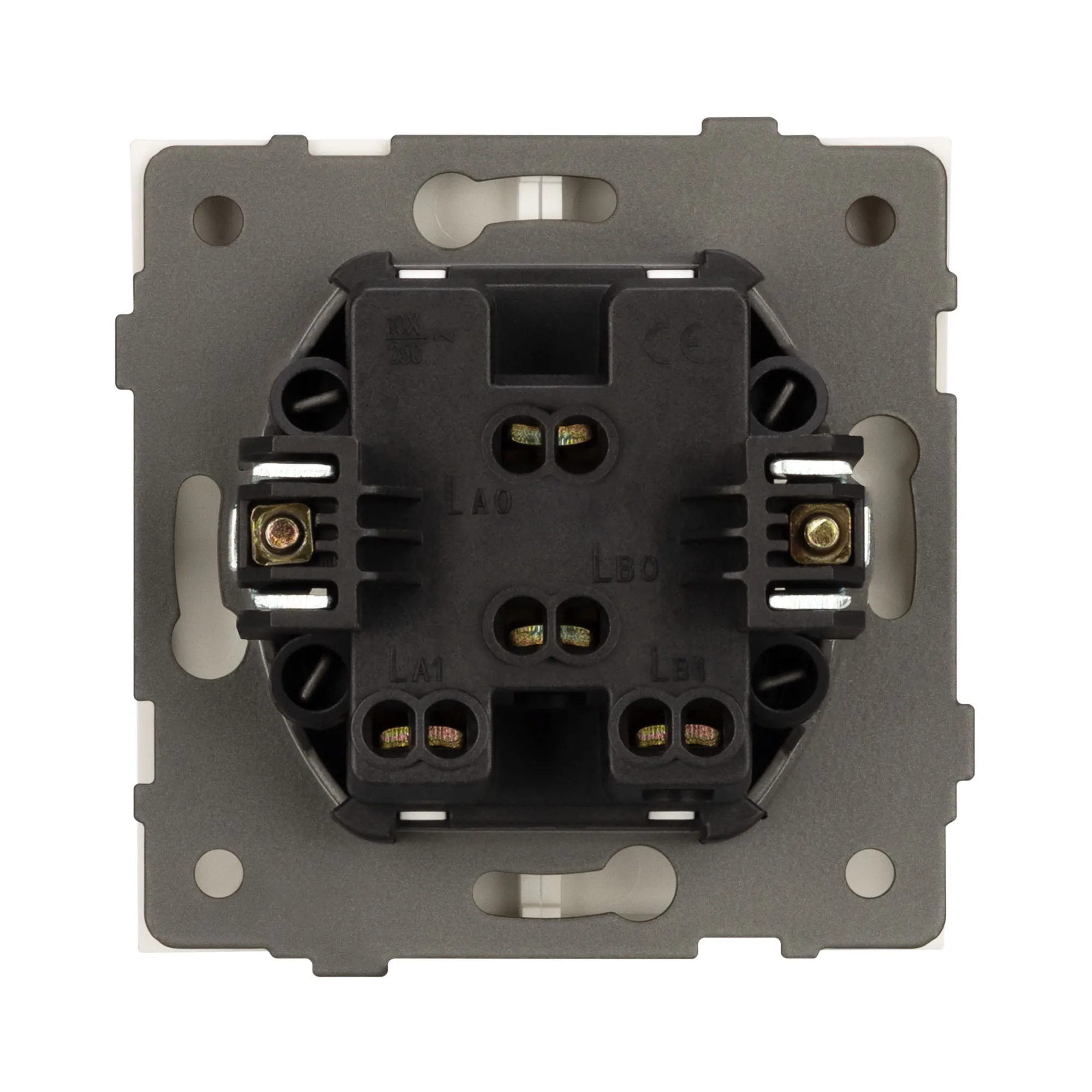 Механизм выключателя управления шторами на 1 пост 2 возвратные клавиши. Цвет - белый, с Soft-Touch покрытием. Без фронтальной рамки. Уровень пылевлагозащиты IP20. Выключатель устанавливается в стандартный подрозетник круглого сечения диаметром 60мм.